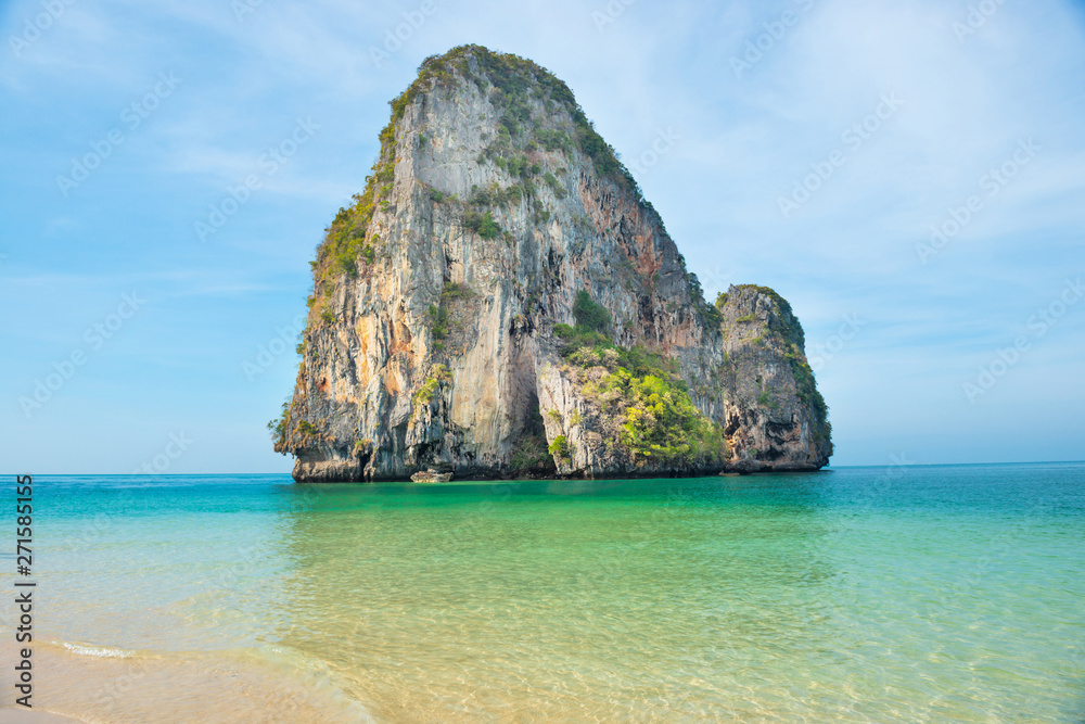 Quadro su tela Thailand landscape with tropical sea near sand beach and rock island on foregrou