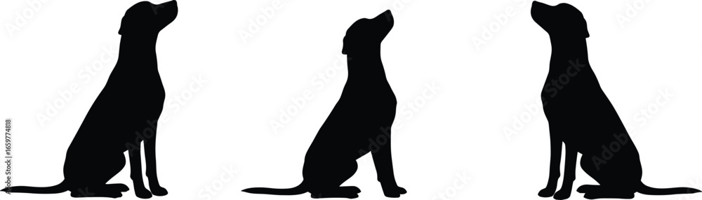 Foto Three black silhouettes of dogs sitting and looking up canine animal