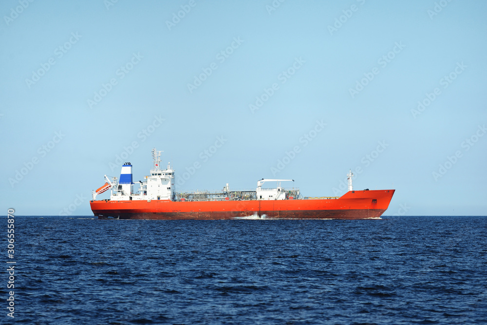 Foto View of a red lpg tanker sailing in a open sea on a clear day