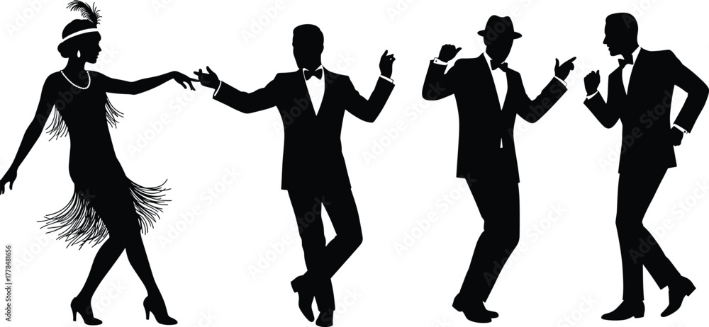 Quadro su tela Vintage dance silhouettes, 1920s flapper style, jazz age dancers, retro fashion,