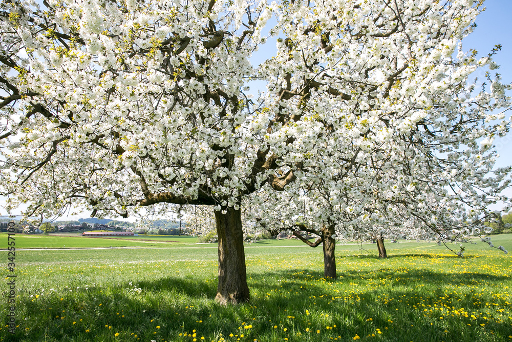 Foto White beautiful cherry tree in a field